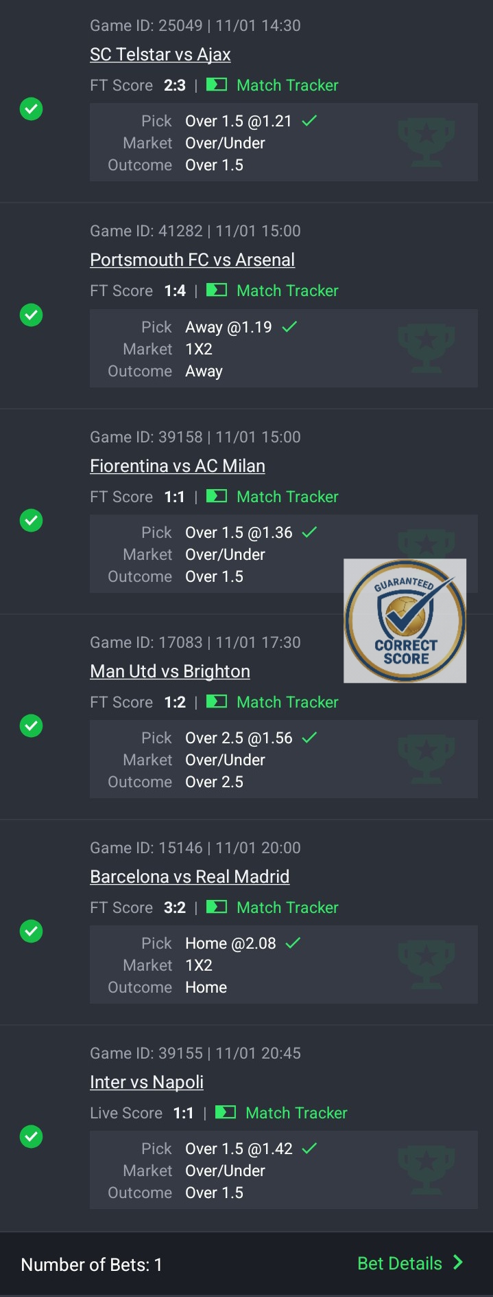 🎯 Winning Bet Bet slip