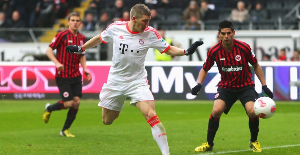 The shirt closely resembles the away kit from the 2012/13 season. It was worn during the club’s historic first treble, most notably in the Bundesliga title-clinching game at Eintracht Frankfurt, when Bastian Schweinsteiger scored the only goal of the game through a nifty backheel. Bayern thus won the Bundesliga in record time, a record they themselves broke the following season.