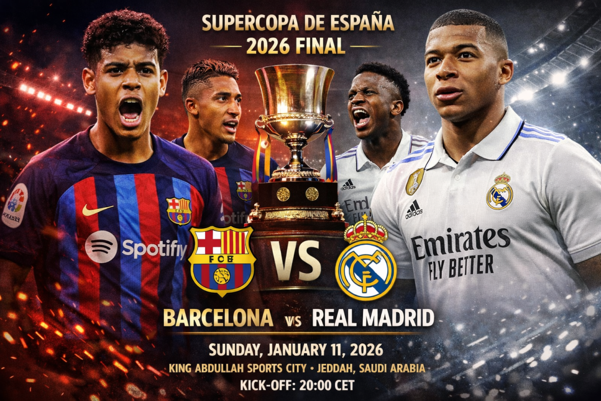 Barcelona vs Real Madrid takes center stage as El Clásico headlines the Spanish Super Cup Final, with both Spanish giants battling for the first major trophy of the season. This highly anticipated clash promises intensity, quality, and drama as Barça and Los Blancos renew their historic rivalry on neutral ground.